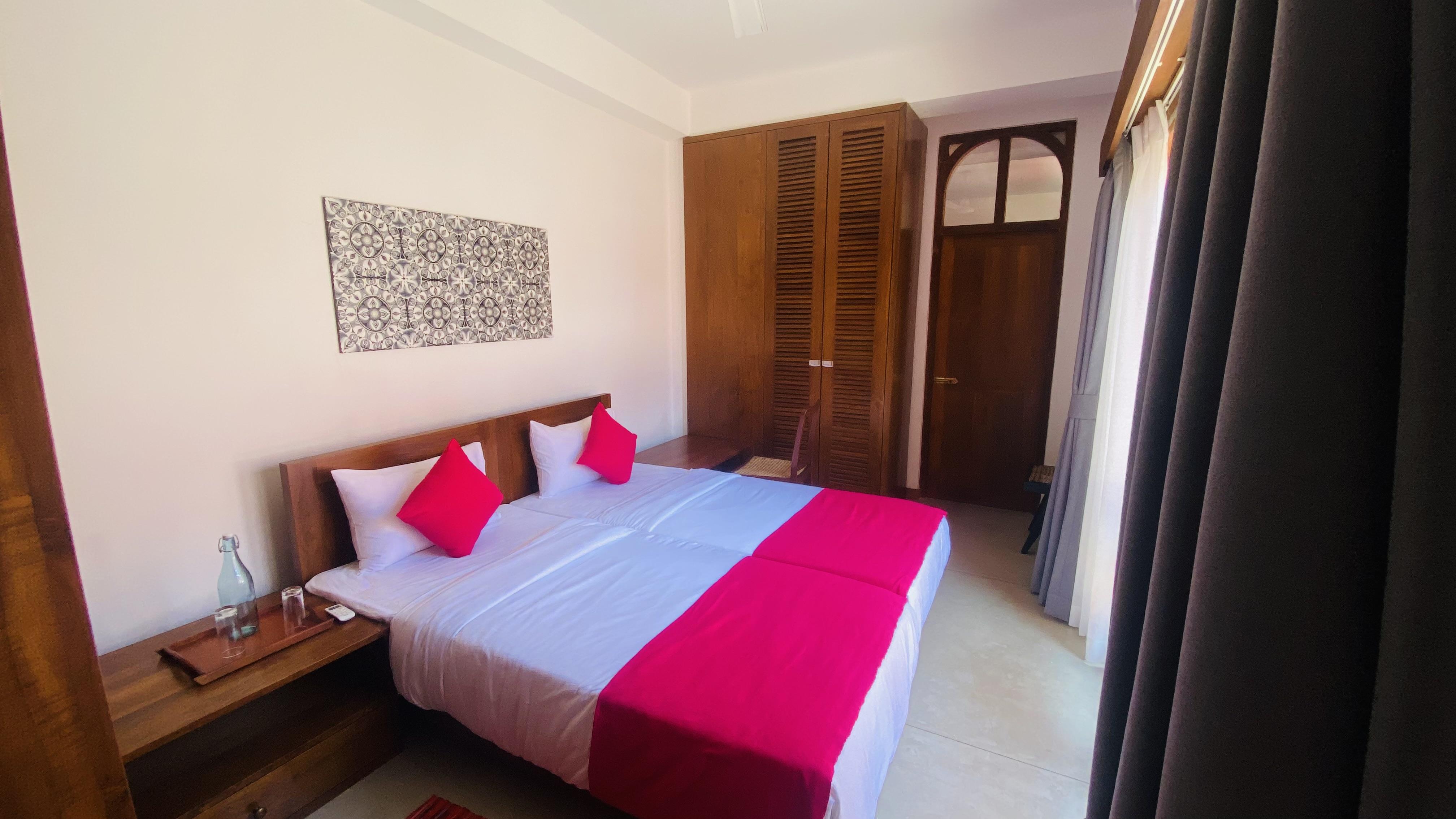 The St. Clair's Room, located on the first floor as the second room, offers a comfortable stay with twin single beds, perfect for sharing or enjoying a bit of extra space. The room is equipped with air conditioning, a ceiling fan, Water heater jug , and an ensuite bathroom to ensure a pleasant and convenient experience. A wardrobe provides ample storage space, and the private balcony is a great spot to relax. For your peace of mind, a safe is also included.
